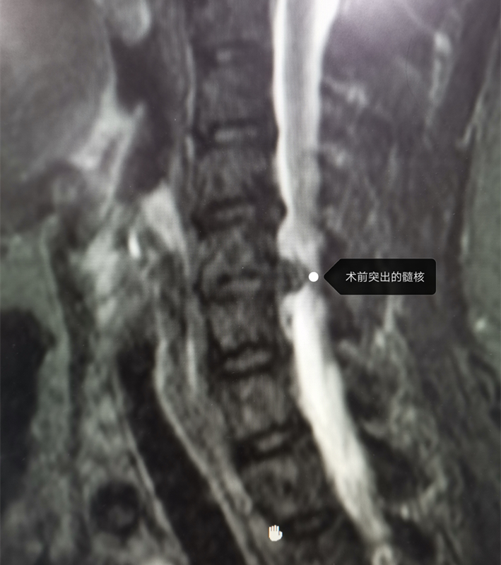 術後(hòu)突出的核髓被(bèi)摘除。